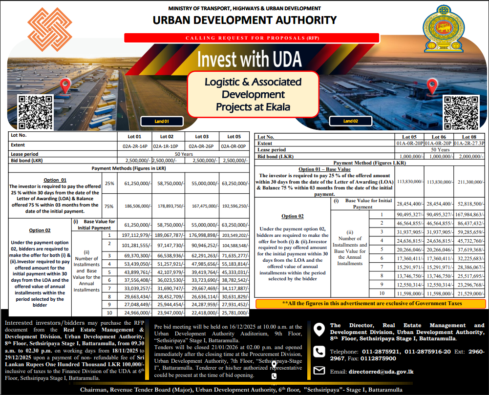 - Logistics Facilities and Associated Development Project (LFADP) at Ekala, Ja-Ela
